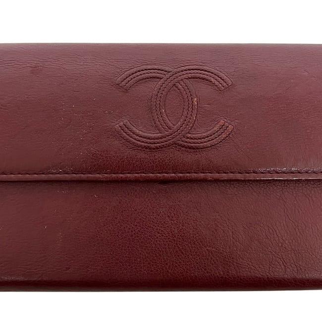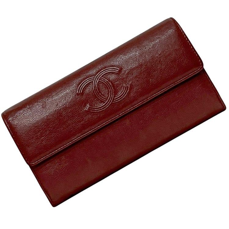 シャネル 二つ折り 長財布 ボルドー バーガンディー ココマーク A50070 美品 23番台 レザー 中古 26234402 CHANEL 財布 ワインレッド ワンポイント ロゴ ホック メンズ レディース 男女兼用 定番 人気
