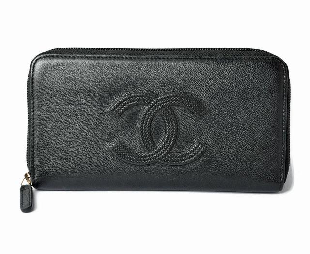 CHANEL 長財布/ラウンドファスナー ココマーク レザー ブラック