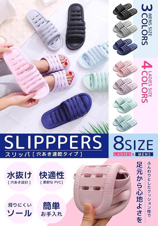 濡れてもすぐに水が抜け、スリッパ本体も乾きやすい設計。