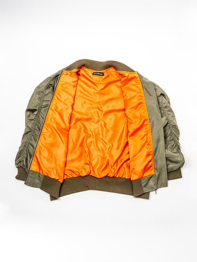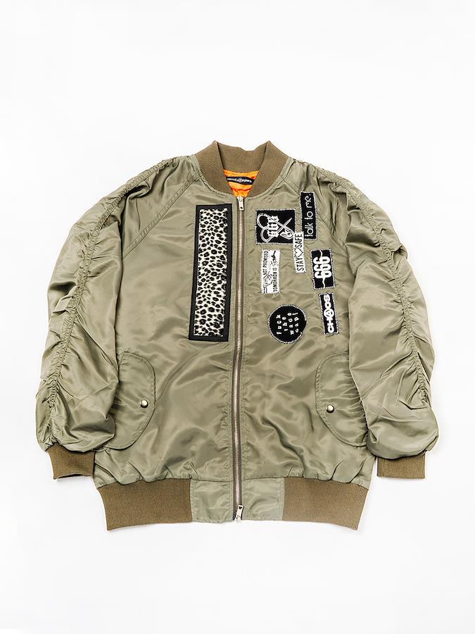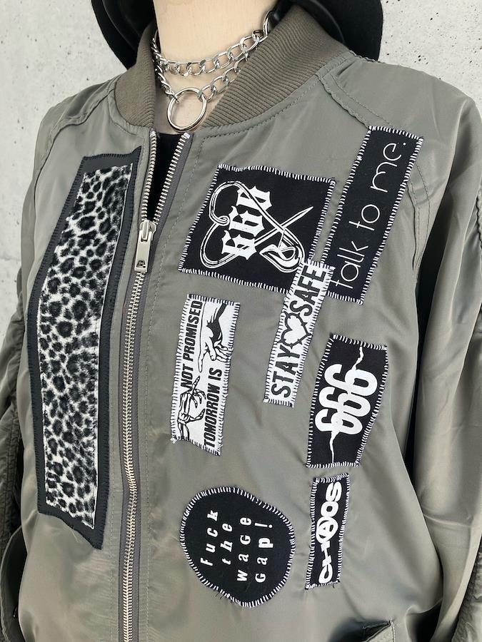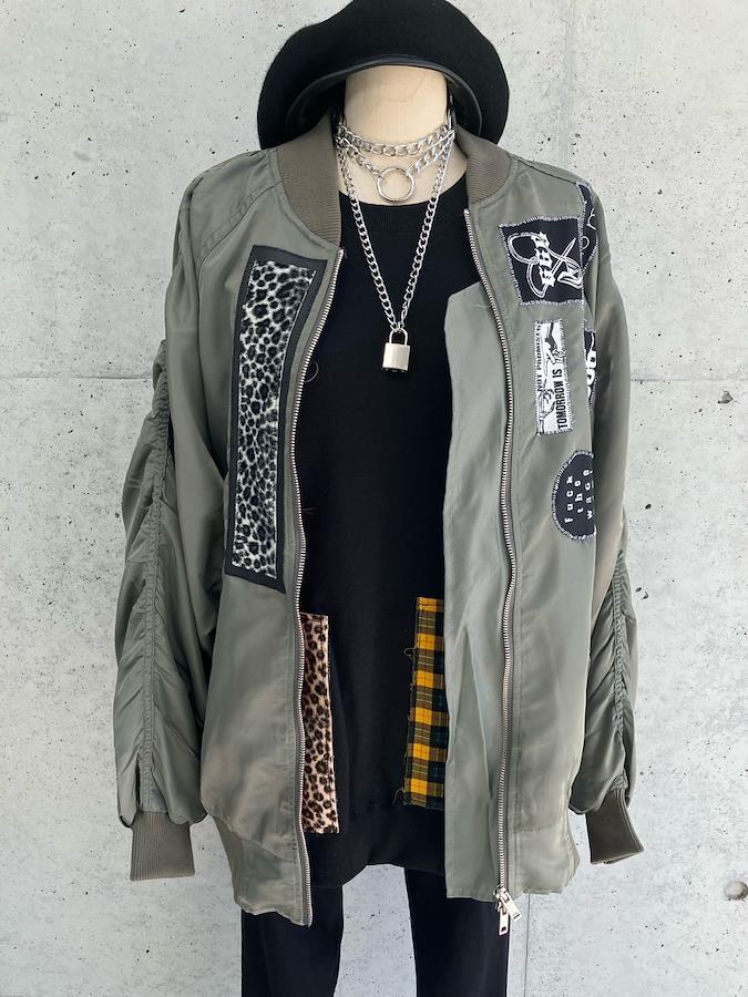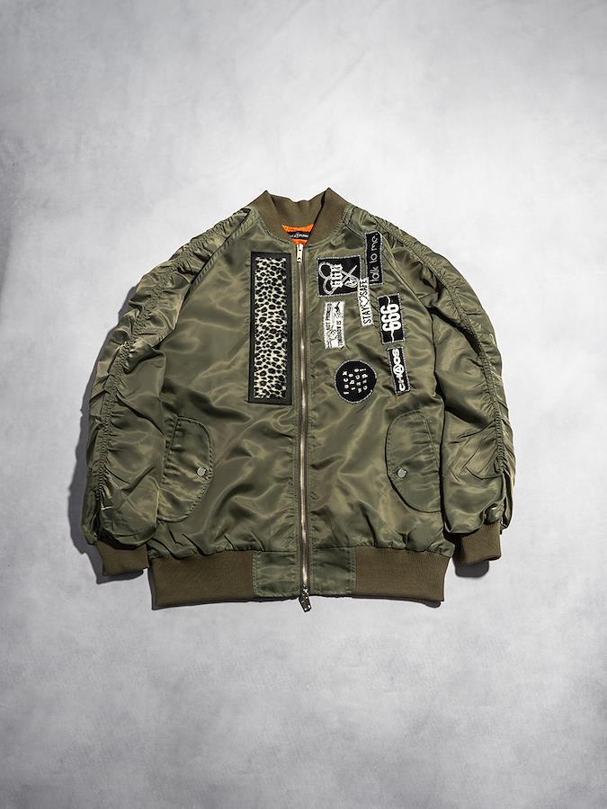 いろいろなデザインのパッチが目をひくシャーリングMA-1。