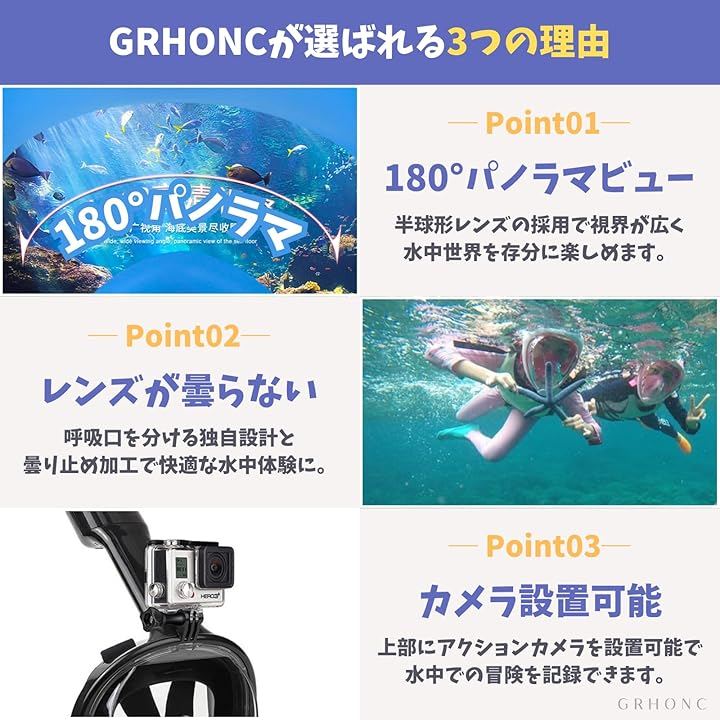 GRHONC子供用シュノーケルマスクは、お子様が安心して水中世界を探検できる最適なアイテムです。