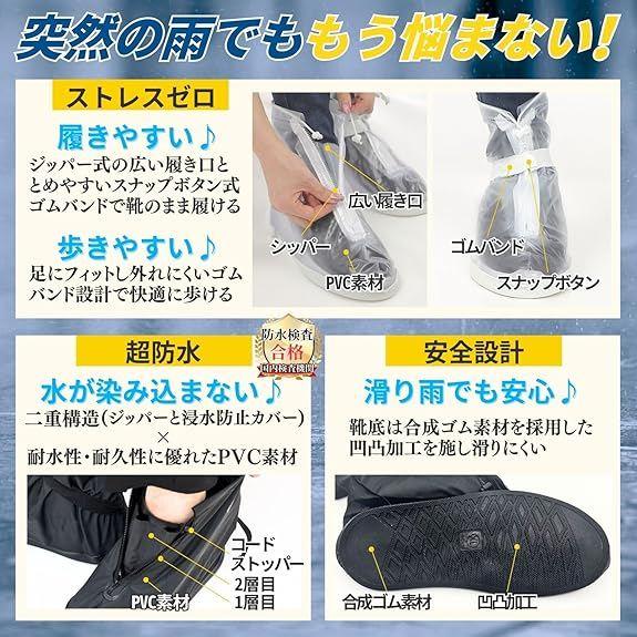 「表地」防水PVC「底材」合成ゴム「靴カバーサイズ」S,M,L,XL,2XL,3XL,4XL 「カラー」ブラック,スケルトン