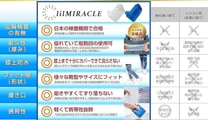 ・v「国内検査機関で防水検査合格」日本の厳しい防水基準で連続5時間の防水性能試験を行い国内検査機関から正規で認められた日本品質のシューズカバーです。