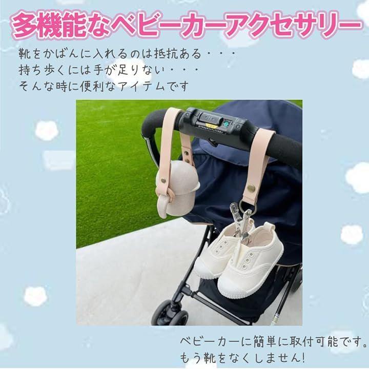 「多機能なベビーカーアクセサリー」このシューズクリップはベビーカーに取り付けることで、さまざまな用途に対応できる便利なアイテムです。