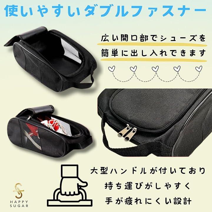 「使いやすいダブルファスナーと大型ハンドル」シューズの出し入れがスムーズで、持ち運びも楽々。