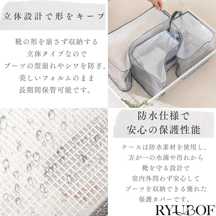 「防水仕様で安心の保護性能」ケースは防水素材を使用し、万が一の水滴や汚れから靴を守る設計で、室内外問わず安心してブーツを収納できる優れた保護カバーです。
