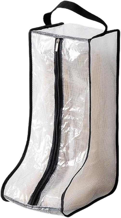 半透明のグレー素材で中身が見やすく、収納したブーツがすぐに判別できて取り出しもスムーズです。