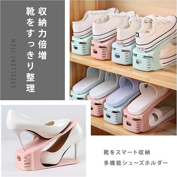 シューズホルダー 靴収納 くつホルダー 高さ調節可 省スペース 収納量2倍