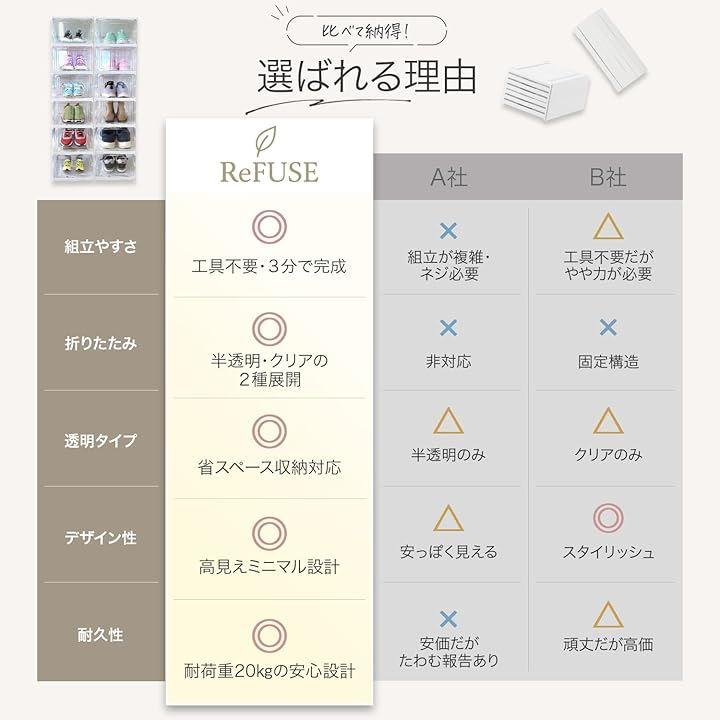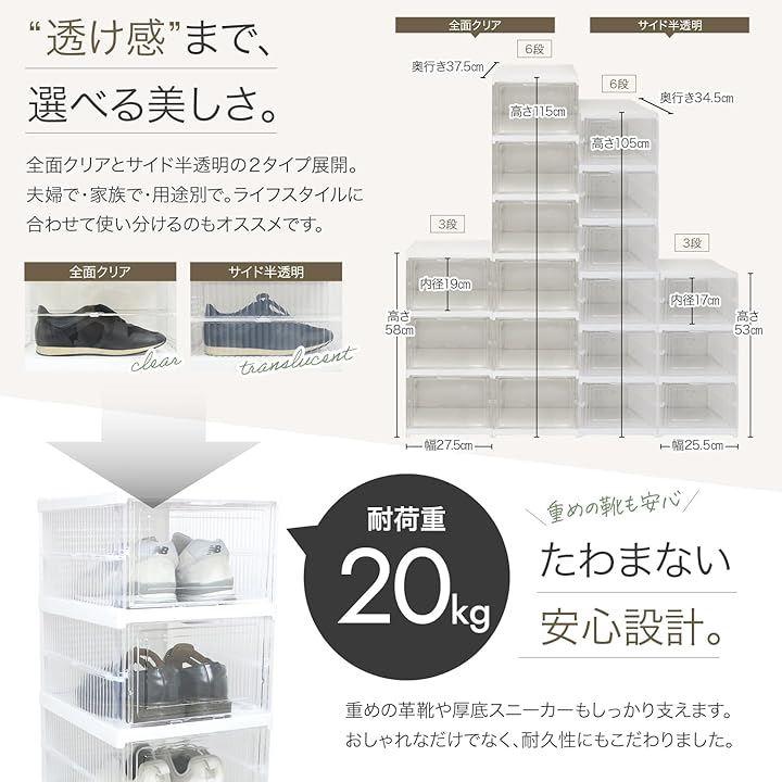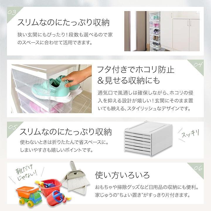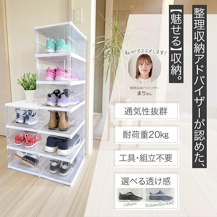 透明感のあるスタイリッシュなデザインで、きれいにディスプレイしながら、玄関やクローゼットをすっきり整えられます。