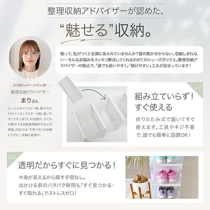 透明感のあるスタイリッシュなデザインで、靴をきれいにディスプレイしながら、玄関やクローゼットをすっきり整えられます。
