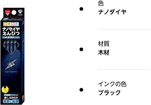 【特長】転がりにくい六角軸【内容量】12本(1ダース)【生産国】日本【硬度】ナノダイヤ 2B【本体材質】木・黒鉛・粘土