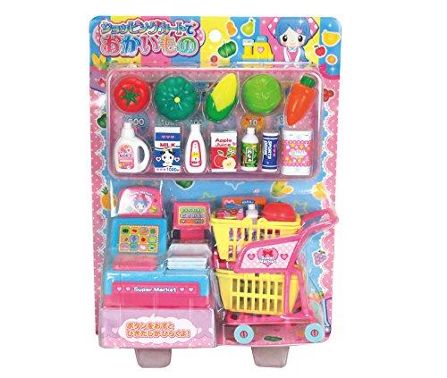 買い物カートと、レジ・食品・その他日用品などたくさん入って、楽しくおかいものごっこができるセット。