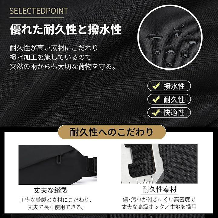 「撥水性と耐久性」:最大6級の防水性能を備え、雨の日でもバッグ内の物をしっかり保護し、大切なアイテムを濡らさないよう最大限に守ります。