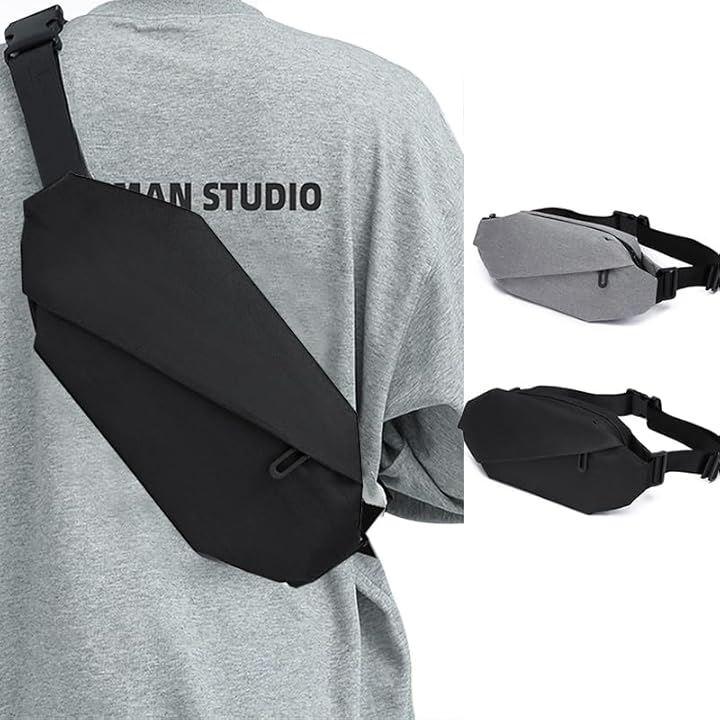 「おしゃれで多用途」: このクロスボディバッグは、クールなブラックカラーになめらかなラインがデザインされています。