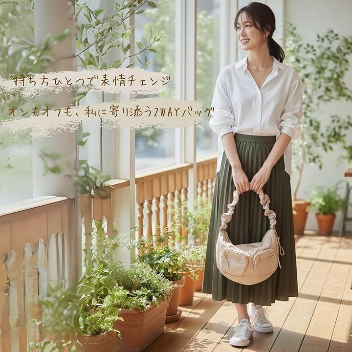 斜めがけできる長さでクロスボディにしたりと、スタイルに合わせて使い分けられます。