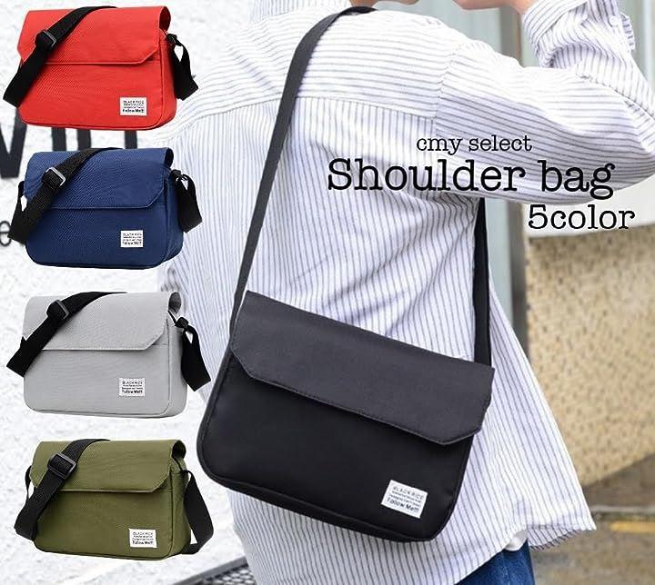 ショルダーバッグ 肩掛け 斜めかけ 無地 メンズ シンプル コンパクト 小さめ 軽量 ロゴ入りレッド