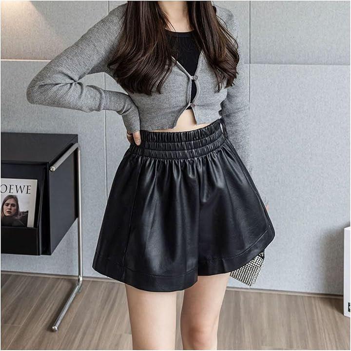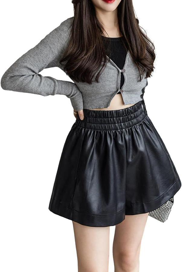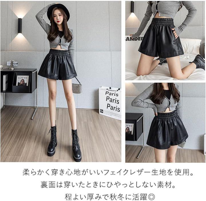 ショートパンツ フェイク レザー Aライン カジュアル ホット ショーパン シンプル ウエストゴム 韓国 お洒落 ボトムス 3カラー PU ハーフパンツ