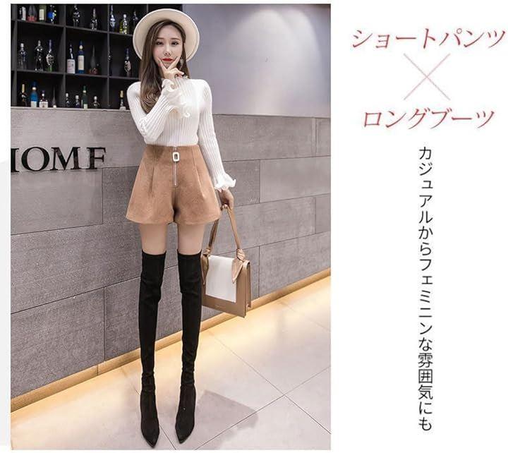 トップスはニットやブラウスなど色々なスタイルと相性抜群。足元はブーツスタイルがオススメです。