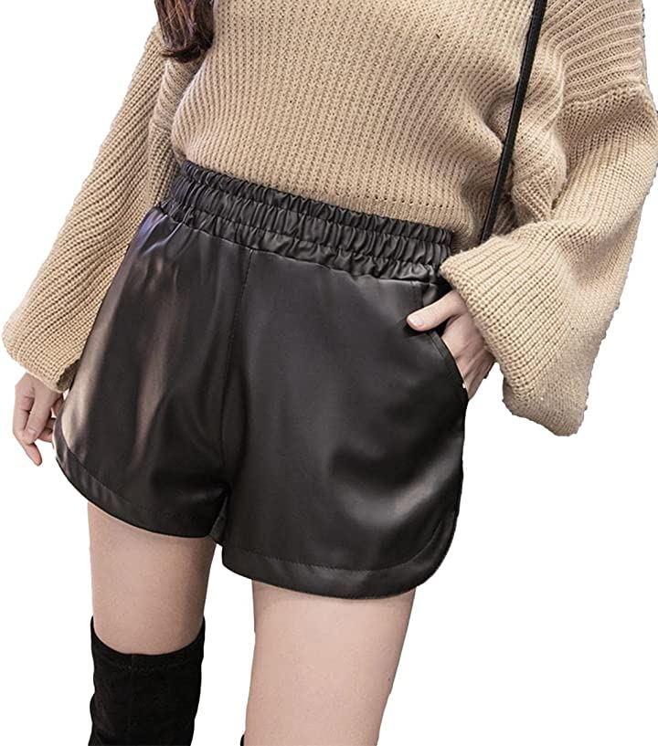 ・シンプルなデザインのPU素材のショートパンツです♥ハイウエストスタイルで美脚&脚長効果が期待できる・