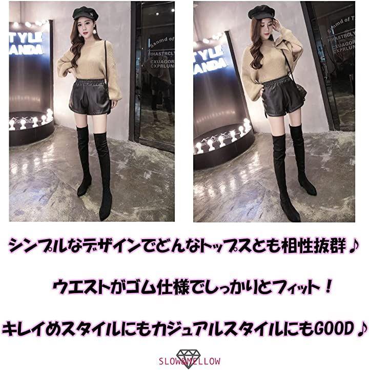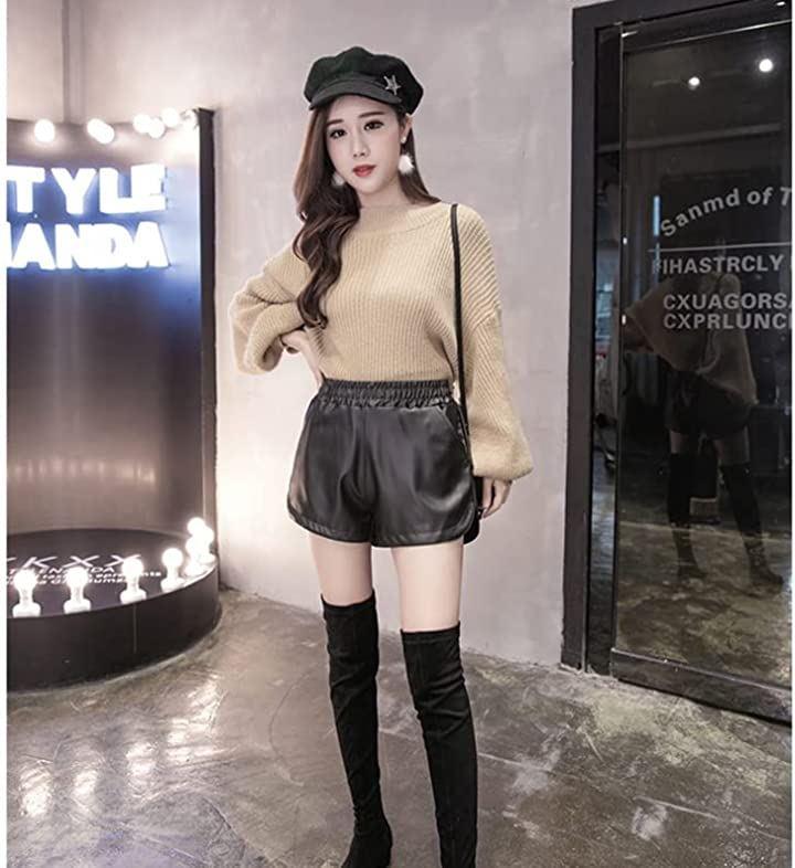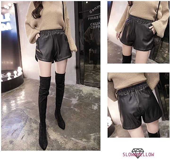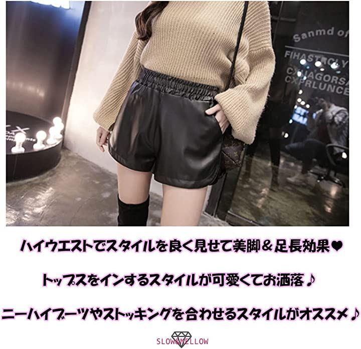 ・シンプルなデザインのPU素材のショートパンツです♥ハイウエストスタイルで美脚&脚長効果が期待できる*