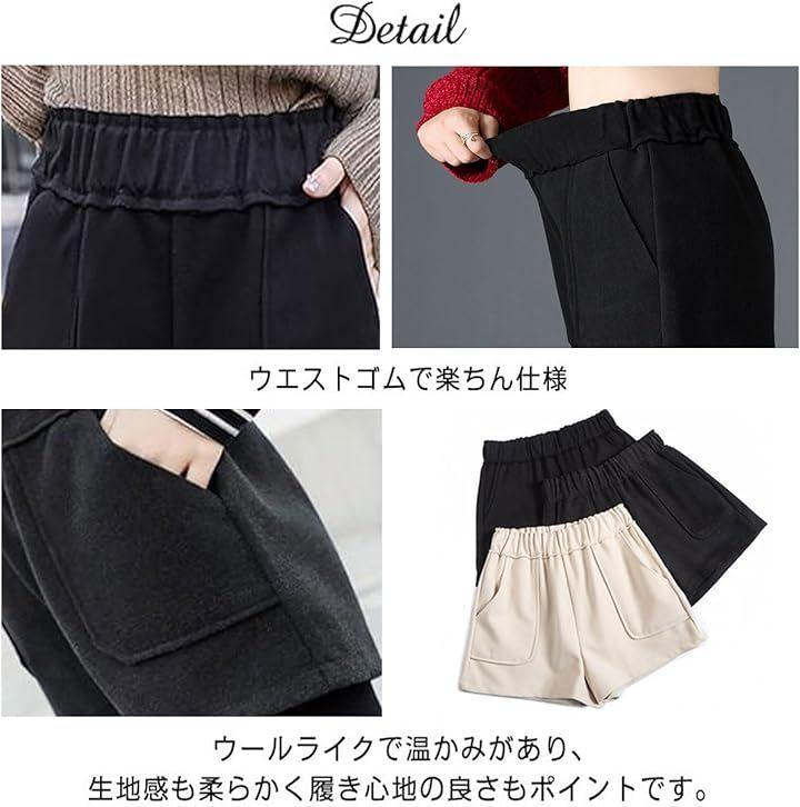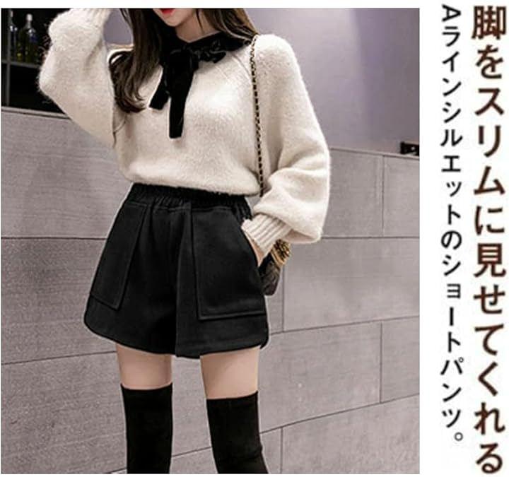 ショートパンツ レディース ハイウエスト Aライン フランネル 調 ウエストゴム カジュアル ポケット ホット 韓国 ボトムス 2カラー ショーパン キュロット ウール 春 夏 秋 冬 可愛い シンプル 大人 ゆったり 体系カバー
