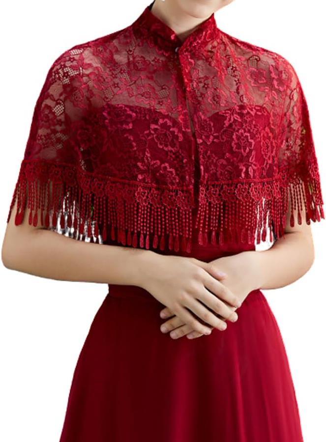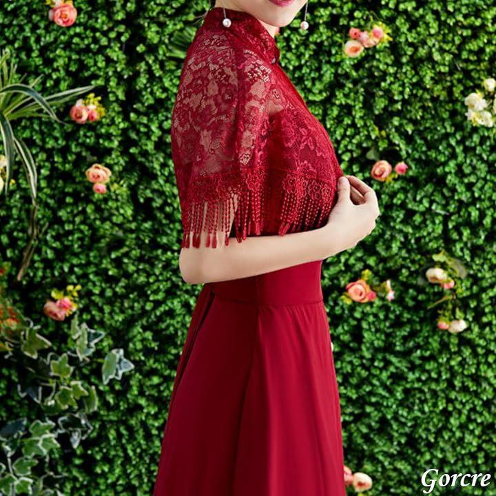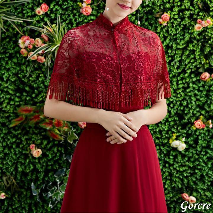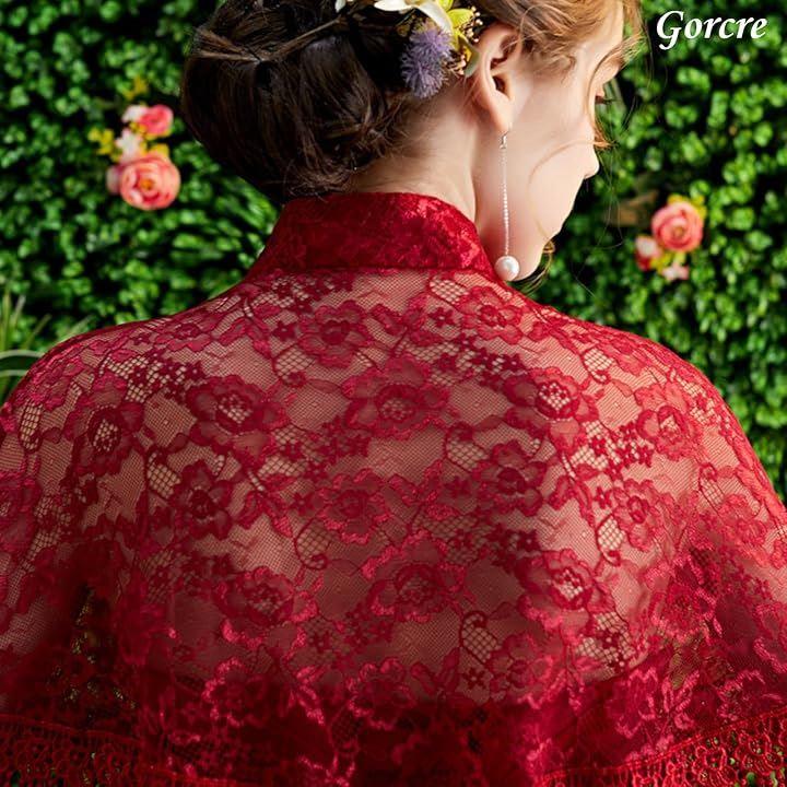 ドレスに羽織るだけで、花柄のレースが華やかで上品な印象に。