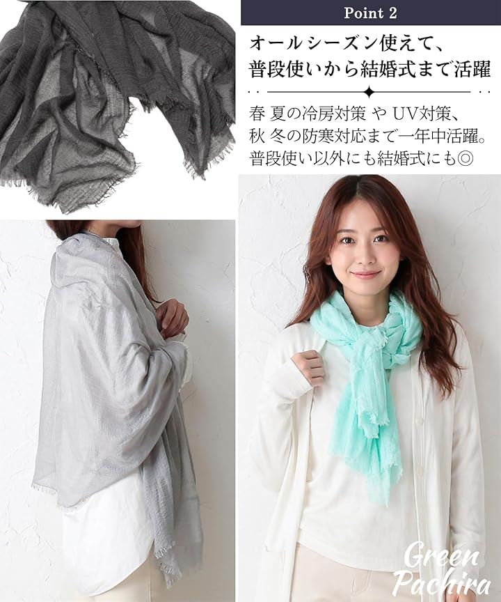 「 軽x薄x柔 ストール」オールシーズン使えるストールです。