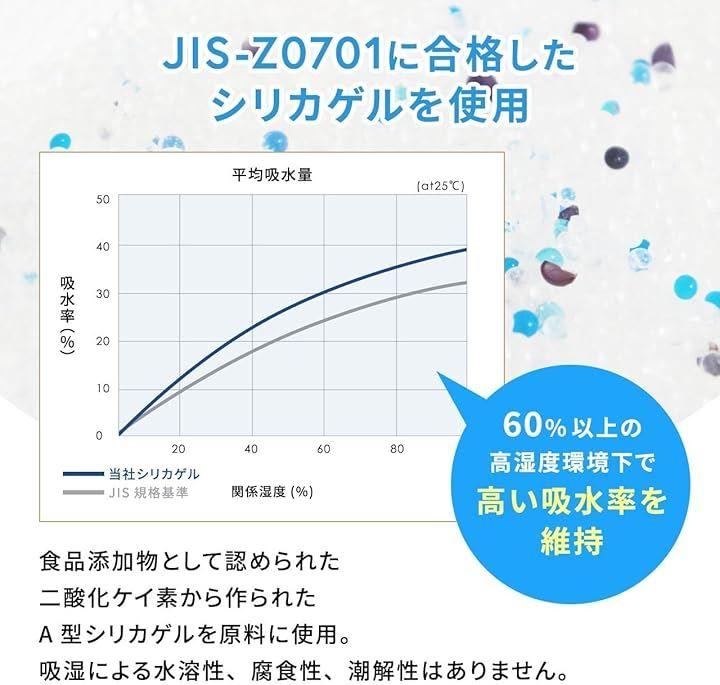 安全性へのこだわり JIS-Z0701に合格した高品質のA型シリカゲルを使用。