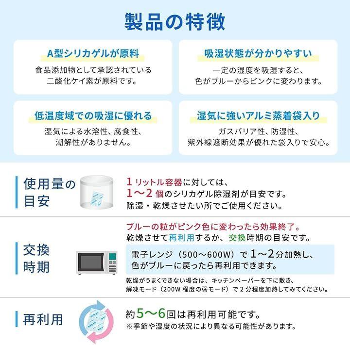 繰り返し使える便利さ ブルーの粒がピンクになったら、電子レンジで加熱するだけで再利用可能。 5~6回繰り返し使用可能で経済的です。