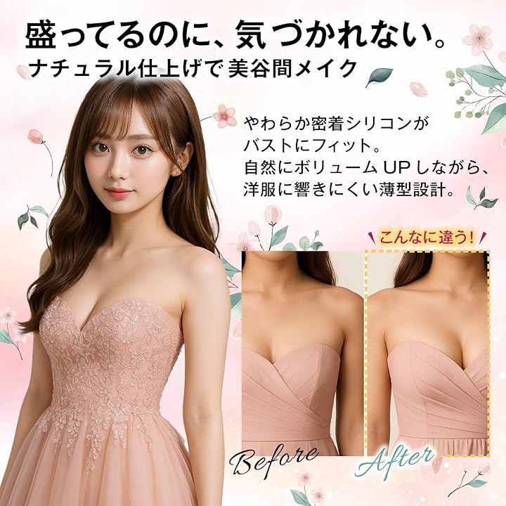 「高密着x美胸」高品質シリコンがもっちり密着し、ナチュラルな丸みと谷間を演出。