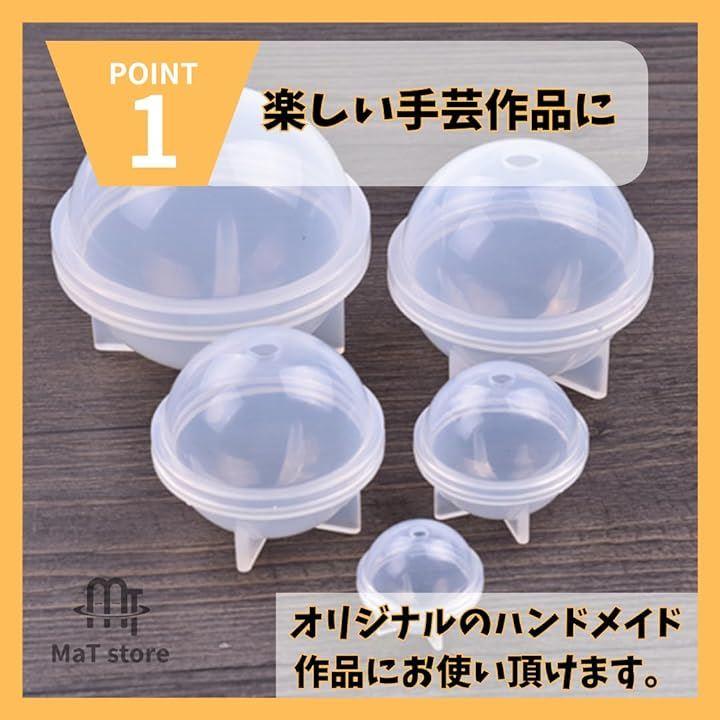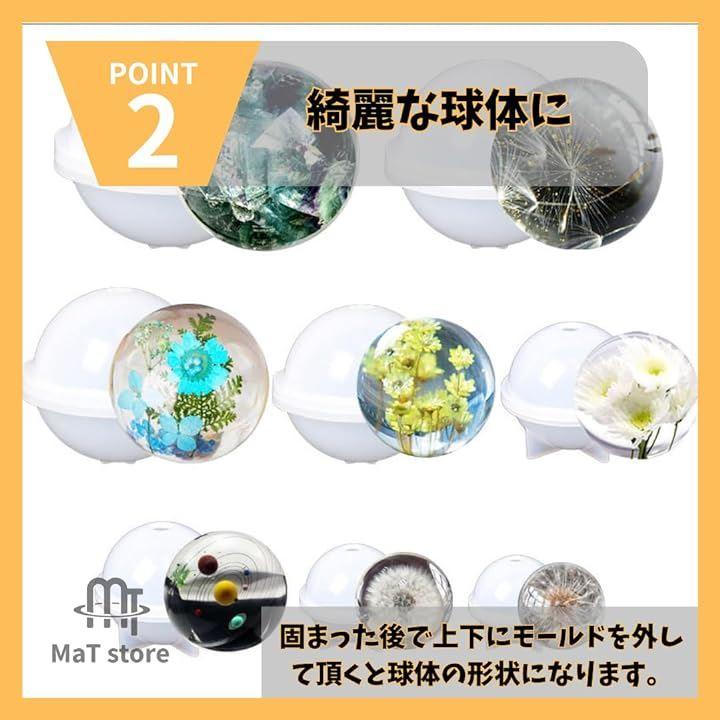 上部の穴からレジンなどを注いで、固まった後で上下にモールドを外して頂くと球体の形状になります。
