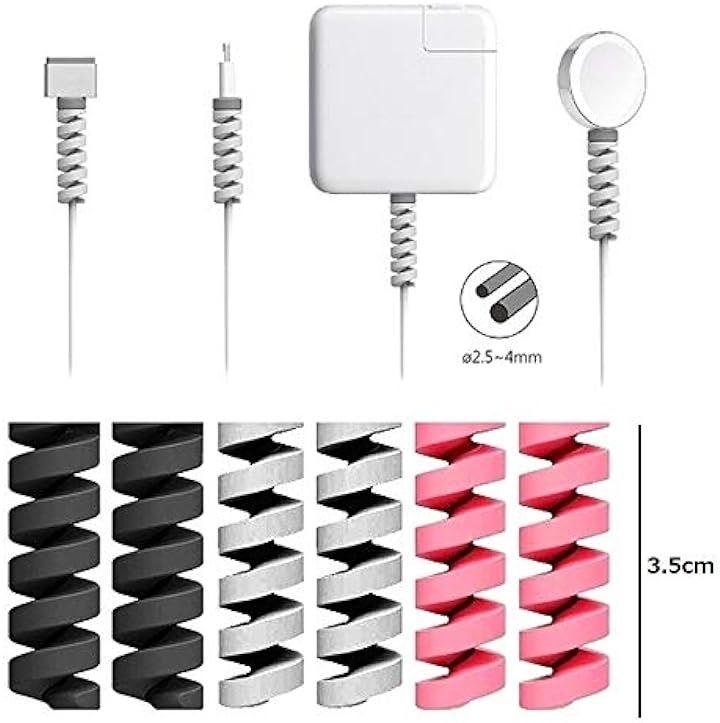 サイズ:3.5cmx0.8cm素材:シリコン配色:ブラックx2、グレーx2、ピンクx2(合計:6本)対応ケーブル:太さ2.5~4mm