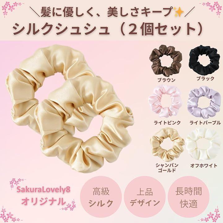 「髪に優しい高級シルク素材」 6Aランク天然シルクを贅沢に使用したシュシュ。