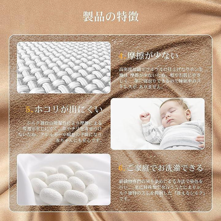 ・「美容・美髪」シルクでの枕カバーは頭皮や髪の刺激が防げて、翌日の朝に髪の毛がサラサラになれる効果があります。