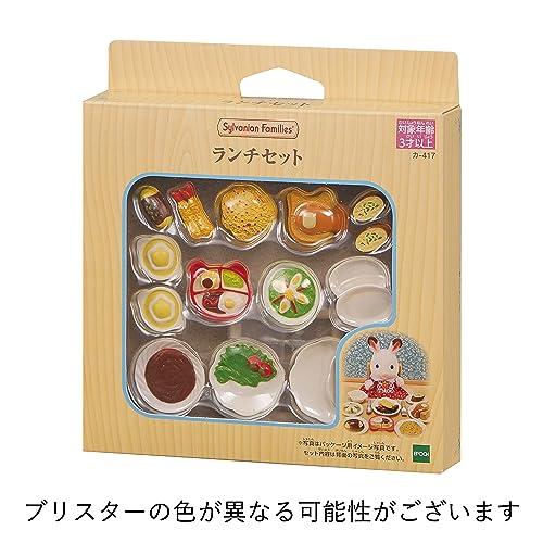 エビフライやオムライス、ピラフなど、みんなでランチタイムを楽しむことができるようなお料理が、たくさん入ったセットです。[セット内容]ピラフ、オムライス、エビフライ、ホットケーキ、キッズプレート、ガーリックトースト、ポタージュ、サラダ、フォーク、スプーン(.co.jpより) 本体サイズ :30mmx30mmx3mm(横x高さx幅) 主な製造国 :中国 (C)EPOCH 対象年齢 :3才以上