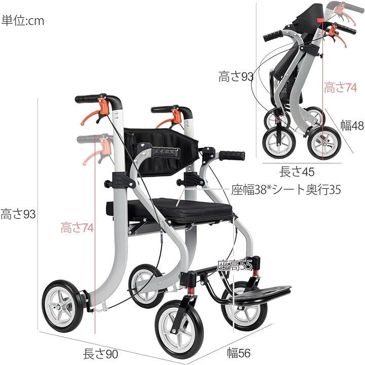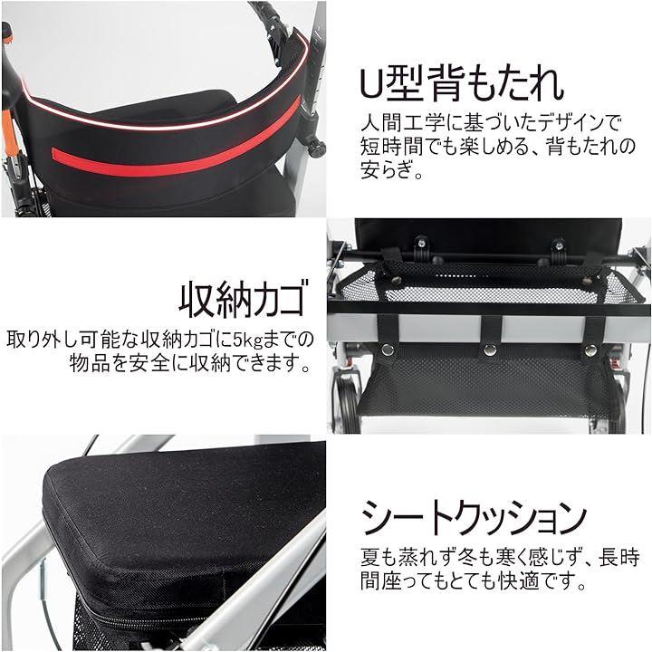 歩行中は背もたれを前に動かし、座りたいときは背もたれを後ろに動かすことが可能です。