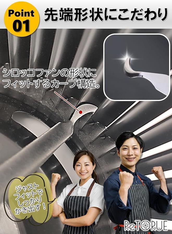 「プロのクオリティをご家庭に」 シロッコファンスクレーパーは、プロ仕様の高品質なツール。特殊な形状のスクレーパーが、ファンの隅々まで入り込み、頑固な汚れを簡単に取り除きます。