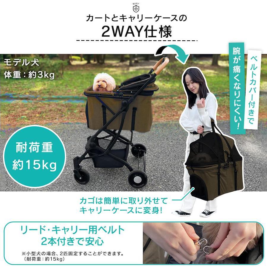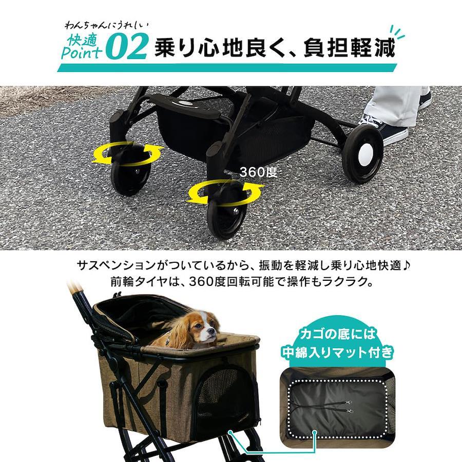 シートは取り外し可能なので、キャリーとしても使えます。通気性のいい、大きなメッシュの窓付き。コンパクトに折りたためるので、車のトランクにもラクラク収納。好みに合わせて選べる3色カラー。