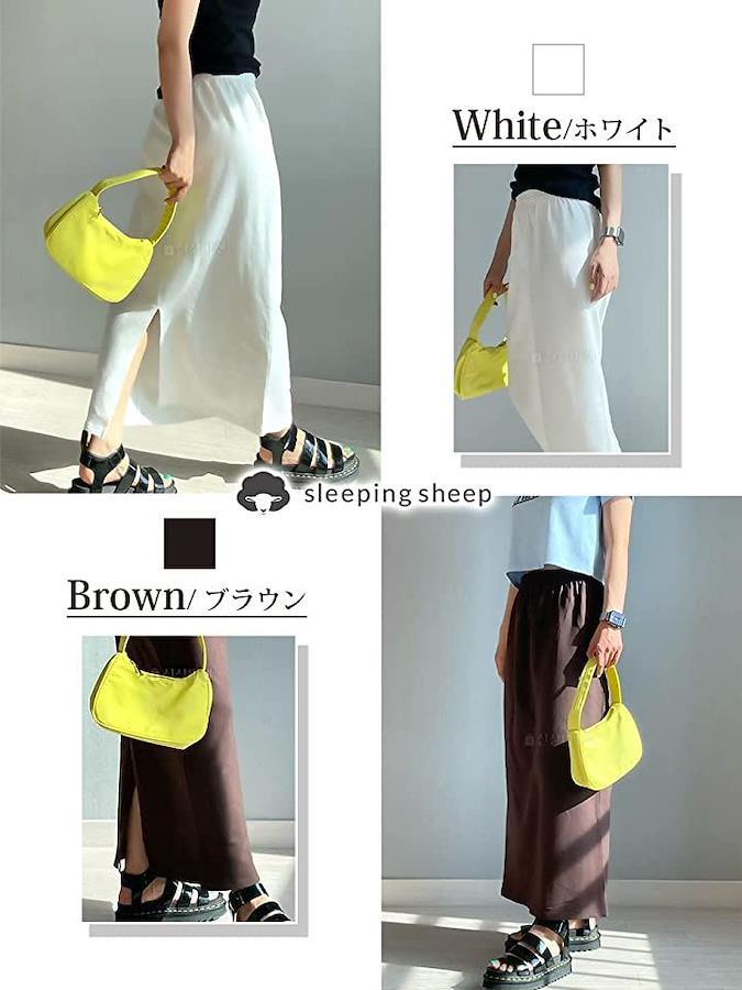 カラーもベーシックに使えてあわせやすい5カラー展開でご用意いたしました。*素材 コットン100%*カラー ホワイト,ブラウン、グレー,ブルー,ブラック*フリーサイズ ウエスト幅31cm 総丈87cm ヒップ幅50cm 裾幅53cm スリット長さ29cm*生産国 韓国