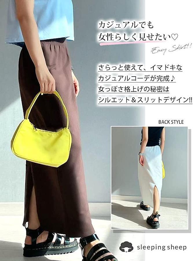 ・程よいタイトなシルエットで、身体のラインはぼかしてくれるから体型カバーもばっちり。ロング丈の視覚効果で脚長効果も期待できる、シンプルで使えるロングスカート。