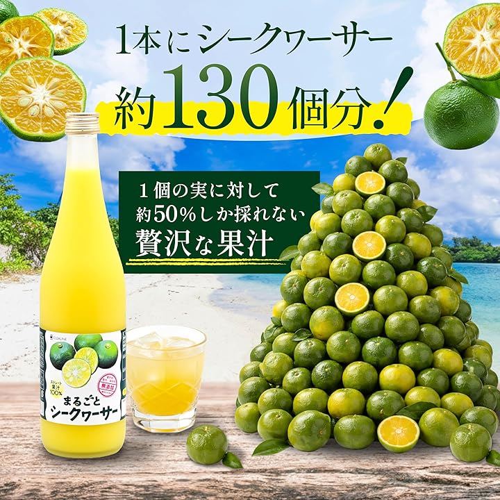シークワーサー1個からわずか50%しか搾れない「美味しいとこ取り」の果汁100%原液です。