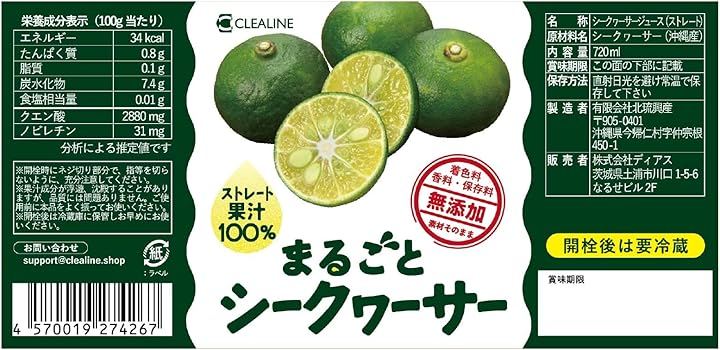 「CLEALINEのまるごとシークヮーサー」は、特定の農家に限定せず沖縄北部やんばる地域の各農家さんからその年状態の良い果実を厳選ブレンドすることで、無添加(着色料・香料・保存料不使用)でありながら、果実由来の豊かな香りと酸味・苦味が絶妙に調和した「毎年変わらない黄金バランスのおいしさ」を実現しています。
