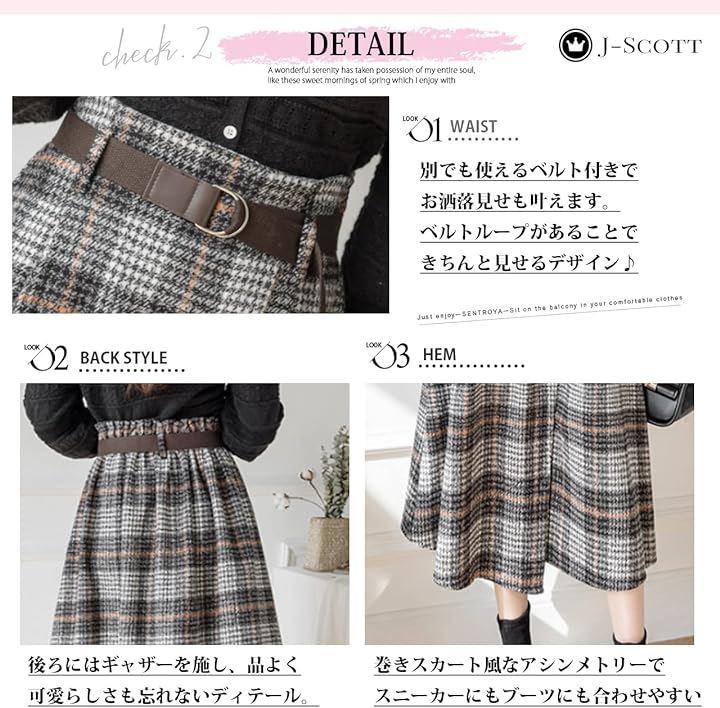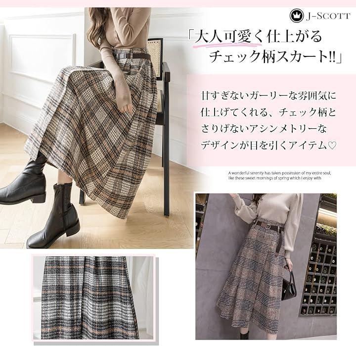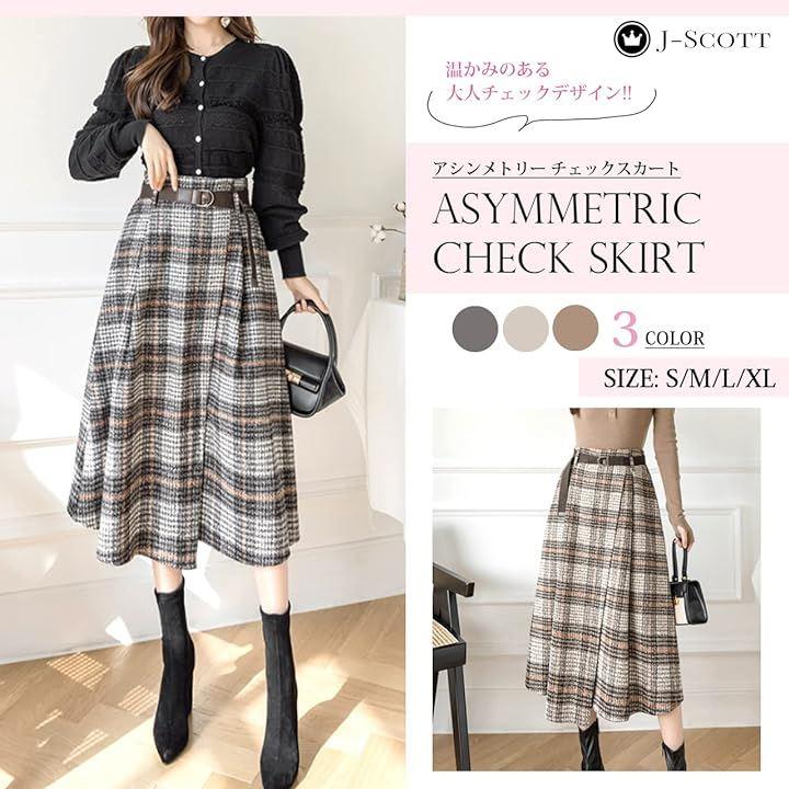 あったか生地で季節を楽しめる 大人可愛いチェック柄スカートの登場です。 温かみのある大人チェックデザイン&アシンメトリーのミディ丈で コーディネートの主役に使えるアイテムです。