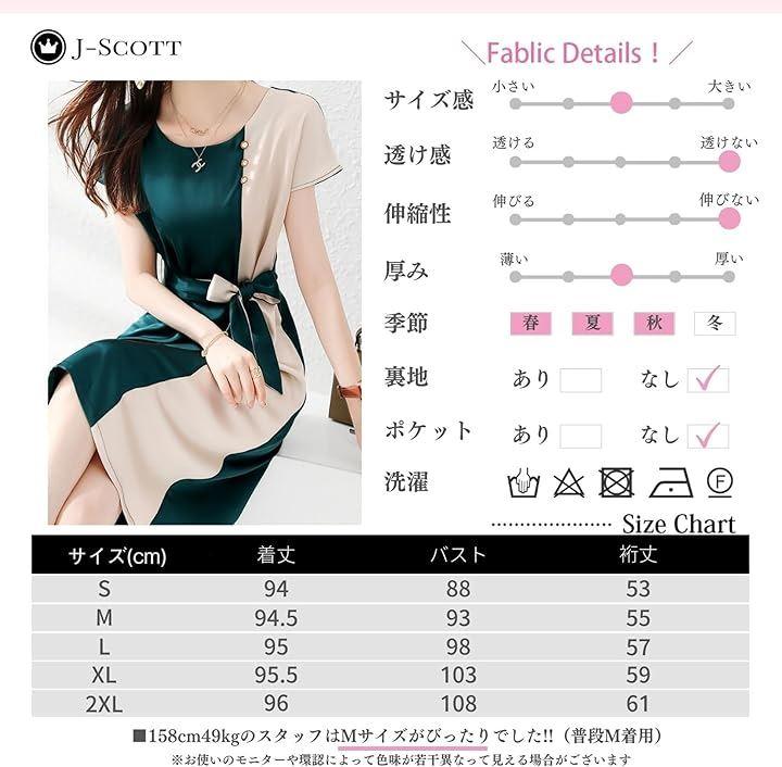 ジェイスコット バイカラーワンピース アシンメトリー 飾りボタン フレア リボン付き ミディ丈 首元広め 半袖 ベージュ JS71-GR-2XL