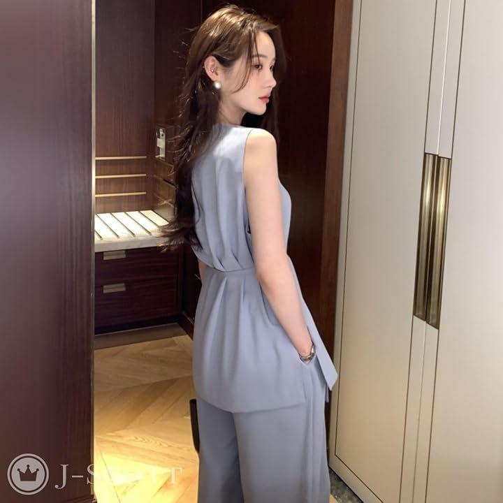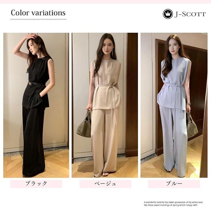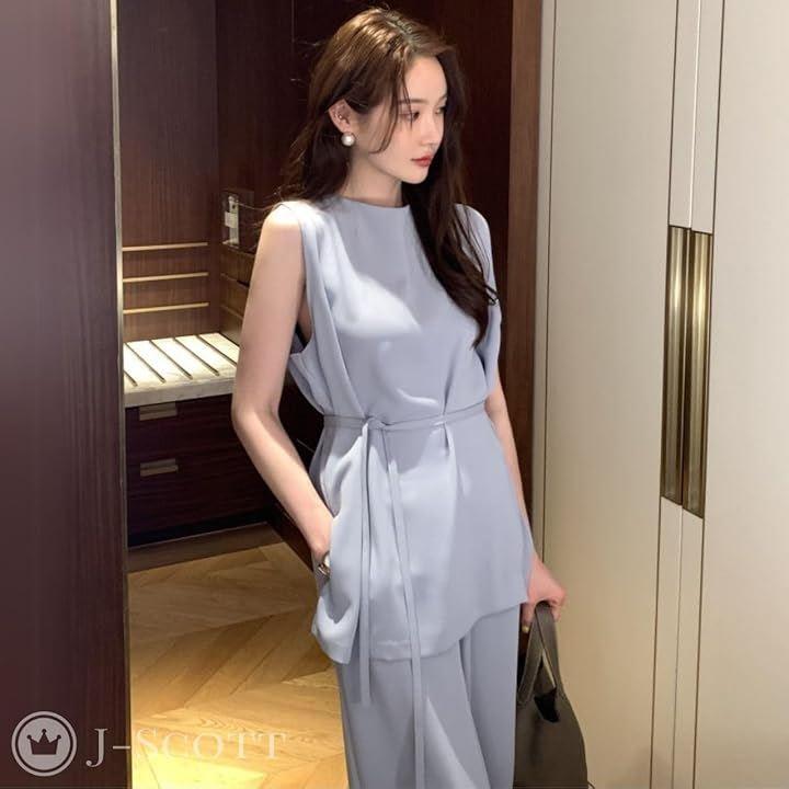 「上品xスタイルアップの両立」 ゆるりと風が抜けるような しなやかなシルエットのノンスリーブトップスと、ラインが出すぎない美脚みせしてくれるワイドパンツのセットアップ。