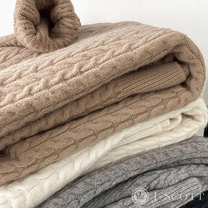 立体感のあるもこもことしたボリュームを作り出すケーブル編みが縦長のラインを作り出し、スタイルアップ効果も抜群です。