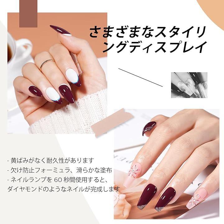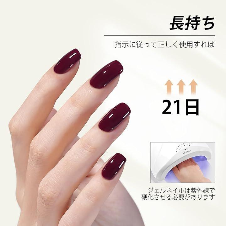 レッドジェル(8ml/本)、TOMICCA ジェルネイル、ジェルネイルポリッシュセットは、UV/LED ネイルドライヤーで硬化する必要があります。