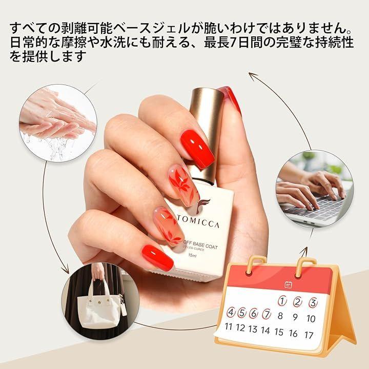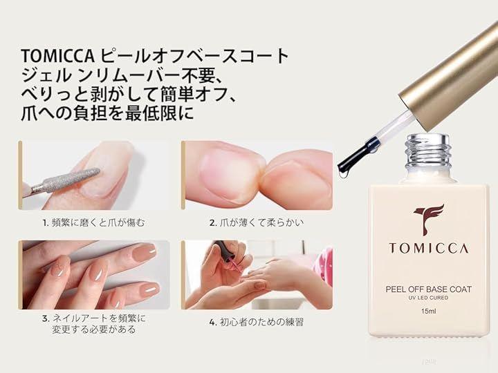 TOMICCA ジェルネイル ピールオフベースコートジェル15ml 剥がせるベースジェル大容量 はがせる ベースコート UV/LED対応 初心者&プロ適用 ジェルネイル練習