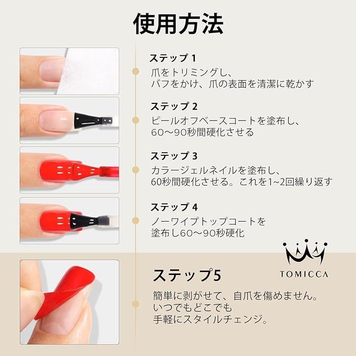TOMICCA剥がせるジェルネイル ベースを使用すると、リムーバー不要。