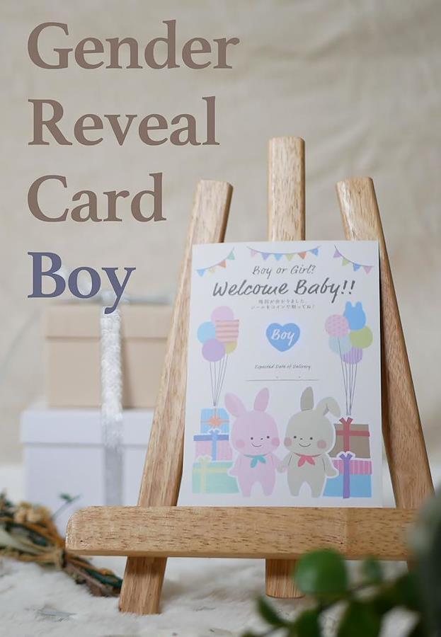 今、SNSで話題の赤ちゃんの性別を発表する「ジェンダーリビール」に使用するカード。